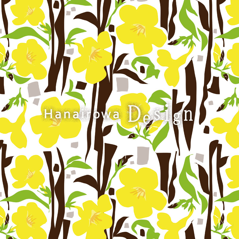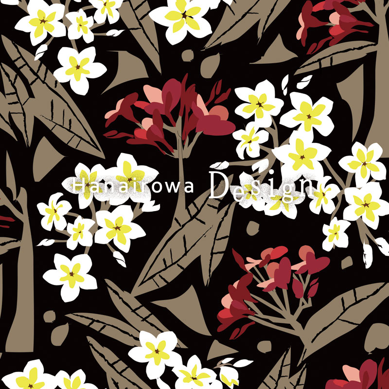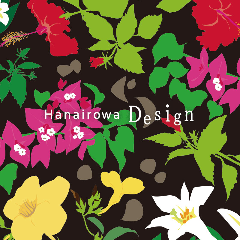 花色和では、オリジナルの南国植物や自然素材をモチーフとしたパターンを作成し、ライフスタイル雑貨やファブリックに展開しています。
